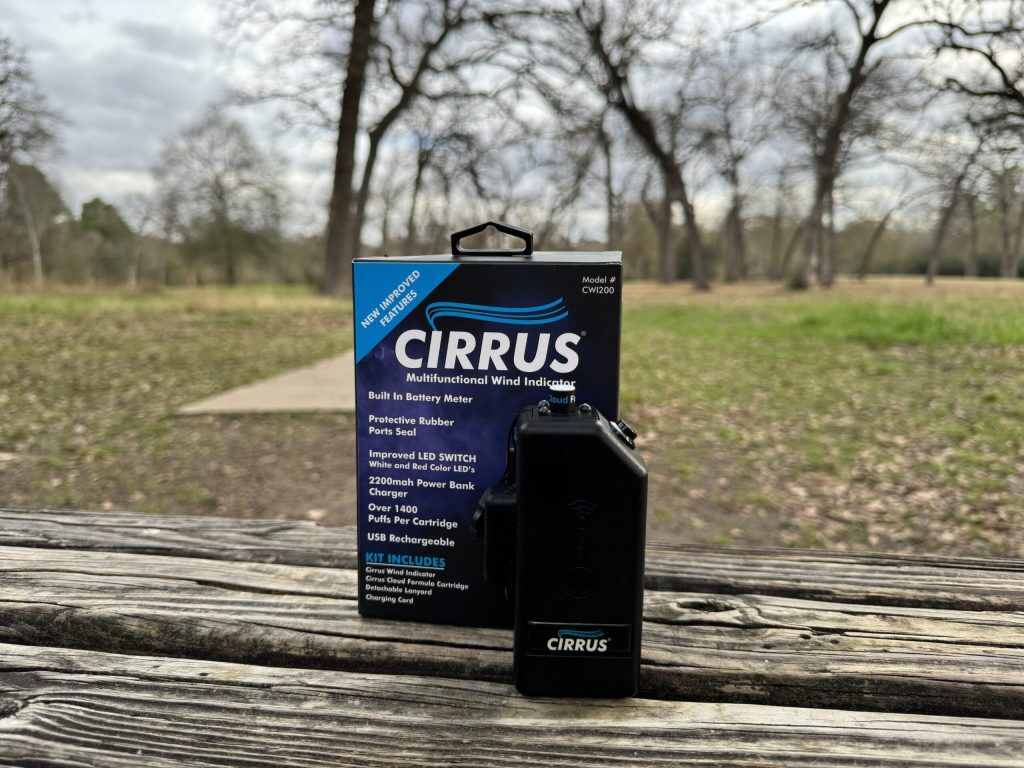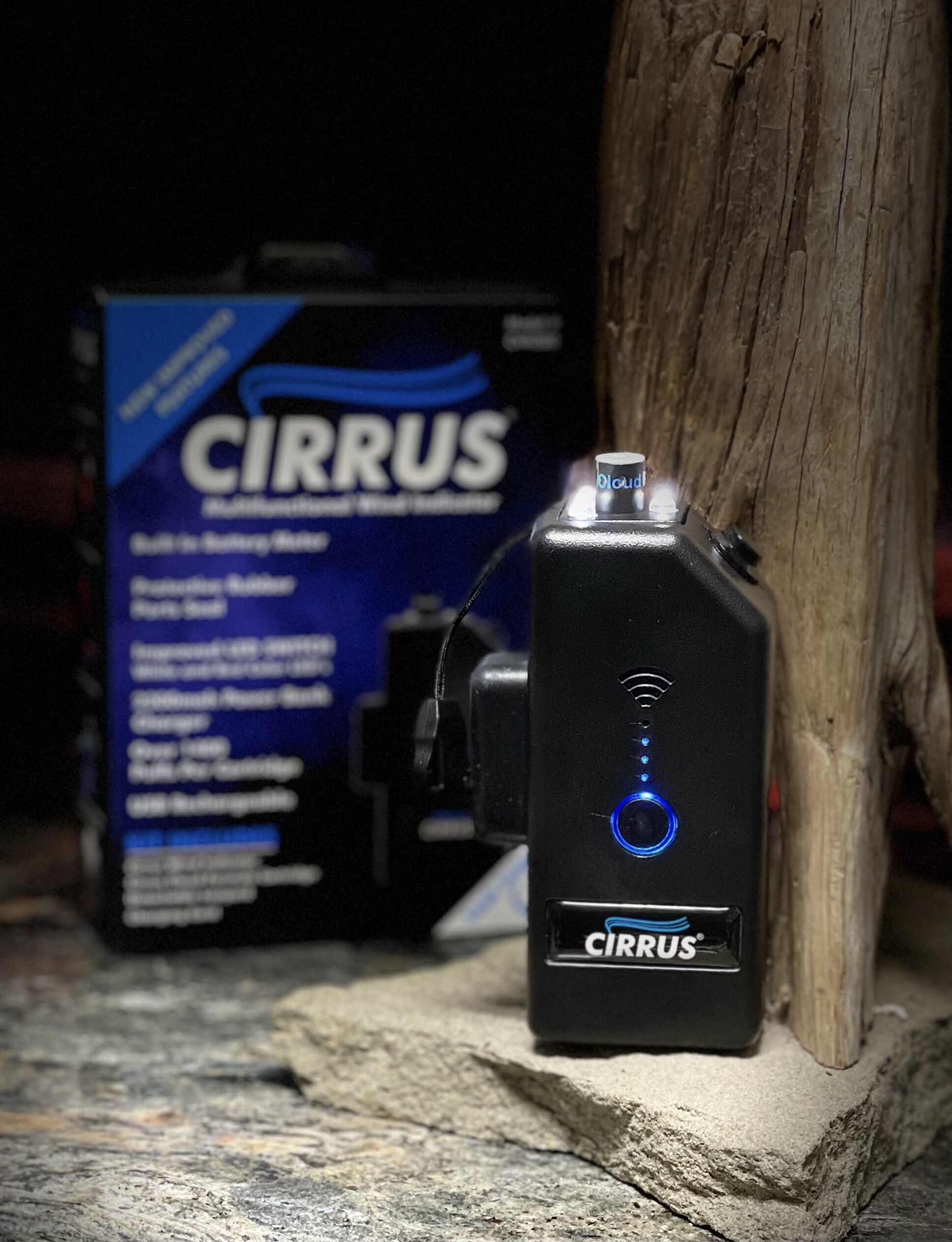 CIRRUS has changed the wind detection market for the first time in decades. The patented design allows the user to puff a SAFE vapor-like cloud into the air and detect the slightest wind or thermal currents. The benefit is thousands of puffs per cartridge, USB rechargeable, lightweight and minimal user movement. Includes red and white LEDs to see wind and thermals in total darkness and a built-in portable charging bank.
